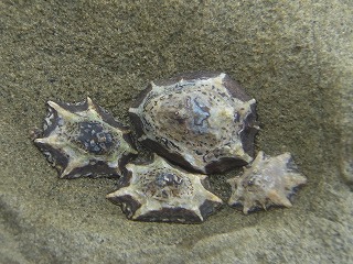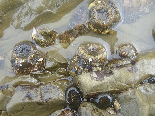 【左】クモヒトデ         【中】オヒラキヘラムシ         【右】カメノテ(上)とクロフジツボ