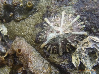 【左】メリべウミウシ)        【中】カンザシゴカイ       【右】ヨロイイソギンチャク、タテジマイソギンチャク、ヒザラガイが見られる