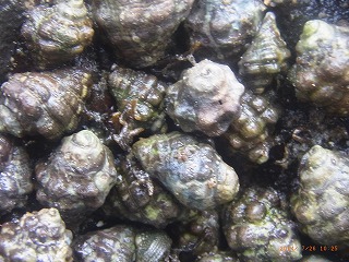 スガイ、イボニシ、コシダカガンガラ、マツバガイ、タマキビガイ、ヨメガガサ、ウノアシ、キクノハナガイ、ヒザラガイ、ウスヒザラガイ、メリべウミウシ、シマメノウフネガイ(外来)