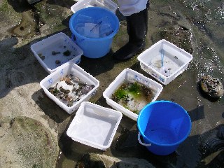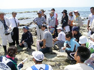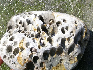 【中】岩にたくさんの穴が開いていました。穿孔貝が棲み家として空けた穴です。(イシマテ、カモメガイ、ニオガイなど)