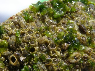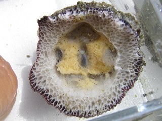 【中】クロフジツボを岩から離してみました。途中で折た断面で、ハニカム構造になっていました。
