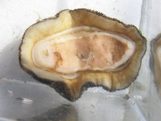 【右】ヒザラガイ、吸盤状になっていて岩に張り付いていました。