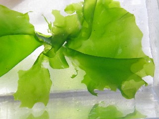 【右】アナアオサ。焼そばのふりかけの原料の一部です。