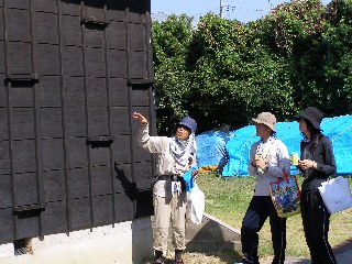 【中】板壁に取っ手が着いていました。何のためでしょう。(内側が土壁になっていて、火災の時いた壁を取り外すためです)