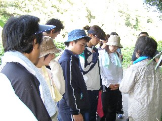 【中】ネイチャーゲーム、カムフラージュの最後の分かち合いをしています。