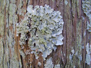 【左】スギにウメノキゴケが着生していました。空気中の亜硫酸ガスの濃度が高くなると生育できなるそうです。