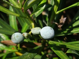 【左】イヌマキ。秋にゼリー状の果肉が出来、これも食べれます。