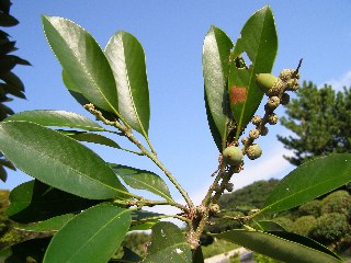 【右】2年でドングリになるマテバシイ。救荒植物でも有り、戦国時代に兵糧対策に城内に植樹された記録があります。