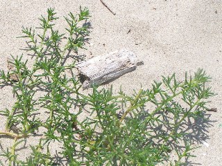 【右】砂浜に海浜植物のオカヒジキが生えていました。しばしば八百屋で販売されています。