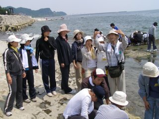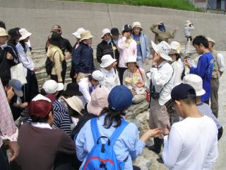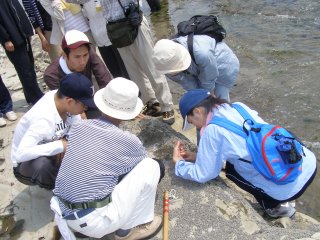 【左】海辺の観察の心得をお話しています。