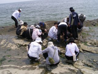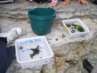 【中】中潮で潮が満ちてきていましたがたくさんの生き物を観察できました。
