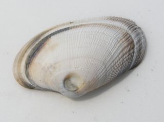 【左】アサリ。丸い穴はツメタガイの空けた穴。