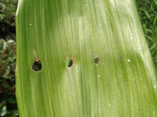 【中】葉が成長する前に虫が食べた跡