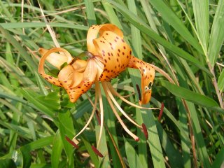 【右】オニユリ、ユリネといって食べるが、根ではなく鱗茎という養分を蓄えた茎の一部。