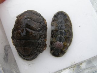 【右】ヒザラガイ(左)ヒメケハダヒザラガイ(右)