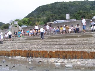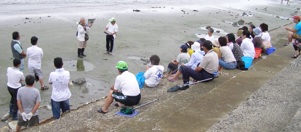 参加した保護者の皆さんは、子供に帰ったように楽しそうに海辺の生き物に触れ合っていました。最近、子供たちは海や山など自然の中に出ないといわれています。また、保護者の皆さんに聞くと「私の子は、海や山が嫌いだから私が行こうとしても付いて来ません」とよく言われます。小さな子が勝手に町に行き、遊ぶことはしません。保護者の皆さんが海や山に行って楽しむのだということを態度で示せば子供は喜んで付いてきます。この機会にぜひフィールドで自然に触れる機会を増やしてください。(記・降幡)