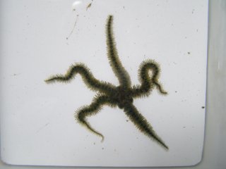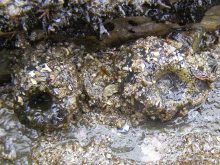 【左】 早速タモに魚が入りました。 【右】しおだまりは水族館みたい。