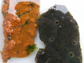 【左】ダイダイイソカイメンとクロイソカイメン