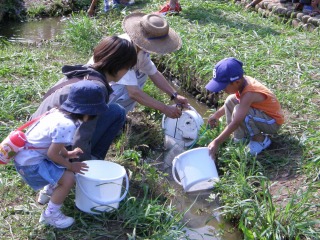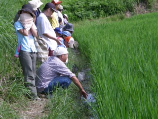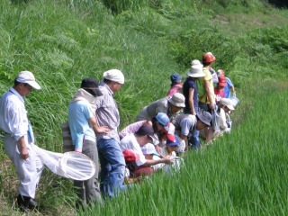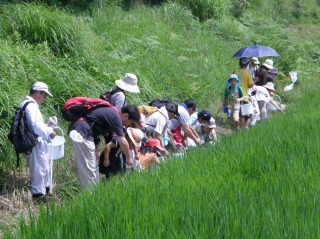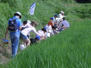 【左】水田の生き物観察