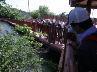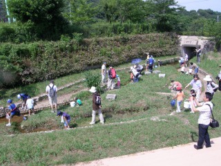 【左】吉田池に入る水路で観察