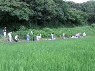【右】水田の生き物観察