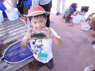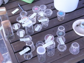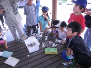【左】水田の生き物を入れた容器