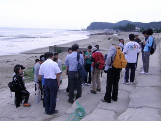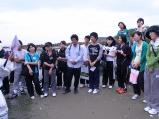 【左】元気に明るく出発 【右】海岸で最初のお話