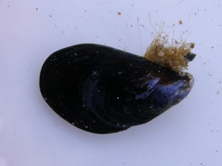 【左】ムラサキイガイ(外来)