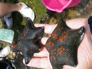 【左】本日の話題種 (5本腕と6本腕のイトマキヒトデ)