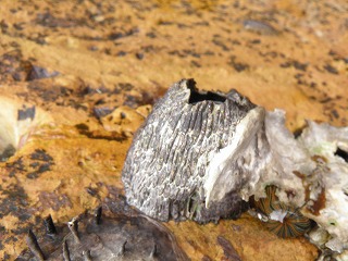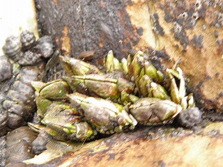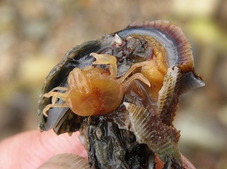 【左】貝殻から出たヤドカリ 【中】カメノテ 【右】クロフジツボ