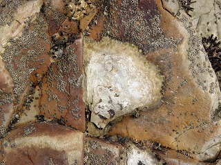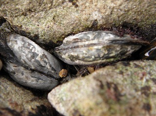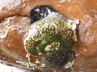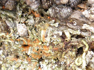 【左】イワフジツボとマガキ 【中】アラレタマキビ 【右】ヒザラガイ