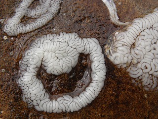 【左】ゴカイの仲間(釣り餌屋さんはイシゴカイ) 【中】ヨロイイソギンチャク 【右】タテジマイソギンチャク