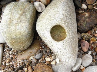【左】自己紹介をしてから開始 【右】綺麗な石が落ちていました