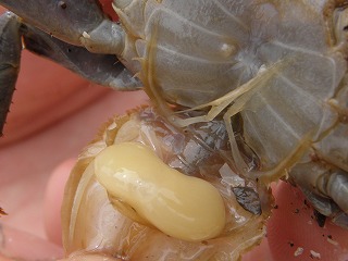 【左】ゴンズイ 【中】ヒライソガニ 【右】カリガネイガイの中に居たカギヅメピンノ?
