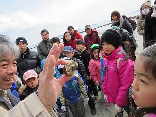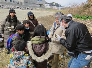 ○説明が聞きやすかった。○分かりやすい説明で、子どもにもやさしく接してくれた。○親切丁寧だった。○都度きちんと対応してくれた。○ラベルをいただけたのがよかった。 ○もう少し採取の時間があってもいい。○化石探しが夢中になった。○化石採りは初めてだった。○化石がとれなかった。 ○後世にごみを残さないように心がけていかなければと思った。○1800万年後にはビニル袋が化石として出てくるという話を聞いて、化石はその時代の環境の状態を示すものなのだと納得した。○ごみを残したくない。○たくさんものごみが捨てられているとは思わなかったので、皆できれいにしていかなければいけないと思った。○海岸がごみだらけで残念だった。ごみを捨てないよう心がけたい。(記・降幡 )