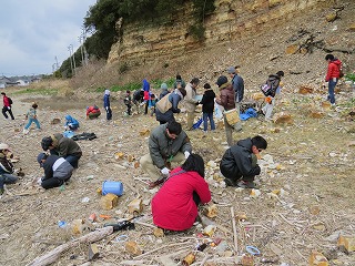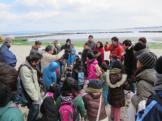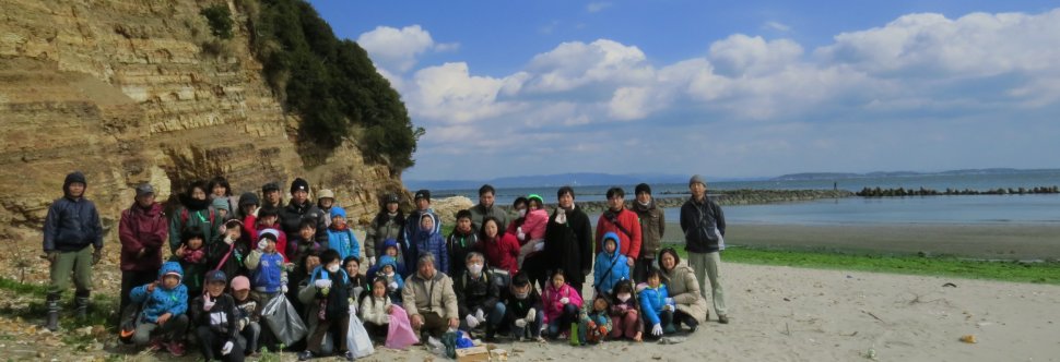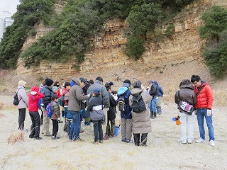 東海市エコスクールの目的は、知多半島の地層を見ながら化石の採取を行います。化石を採取することで、知多半島の歴史や地球上の生物の歴史を知ることができ、かけがえのない地球の大切さ、地球環境の保全の必要さを学びます。ということで寒風の中たくさん参加されました。