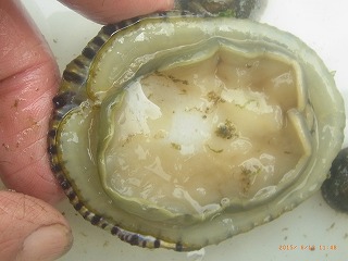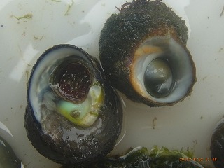 【左】スガイ 【中】巻貝はイボニシ 【右】アメフラシ