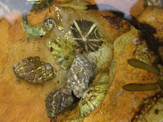 ヒザラガイ、ヒメケハダヒザラガイ、ケムシヒザラガイ、ヨメガカサガイ、カラマツガイ、マツバガイ、タマキビ、マガキ、コシダカガンガラ、イボニシ、スガイ、キクノハナガイマガキ、アメフラシ、アメフラシの卵塊、マダコ