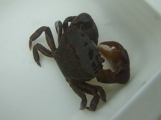 【左】フクロムシが寄生しているヒライソガニ 【中】ヒライソガニ 【右】オオギガニ