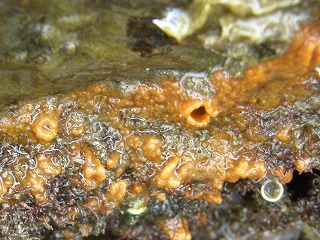 【左】ダイダイイソカイメン 【中】クロイソカイメン 【右】ヨロイイソギンチャク