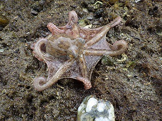 【左】ミドリイソギンチャク(水中撮影)         【中】マダコ         【右】マンジュウボヤ