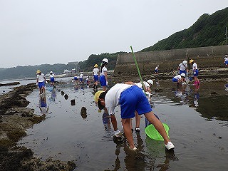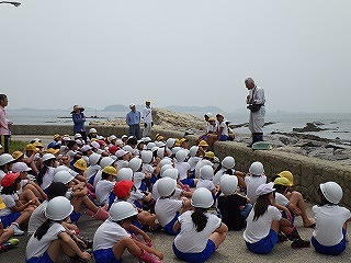 講師による解説を班ごとにおこない、講師に生き物について質問している瞳は輝いていました。怪我人もなく無事に「海に親しむ会」を終えることができホッとしています。(記:田中達)