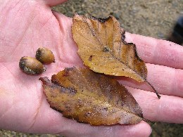 【右】このドングリはコナラです。大きな木が桧原公園にありました。