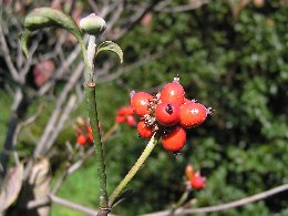【左】マンリョウの実はまだ緑色でした。赤色がつくと鳥さんに食べてもOKのサインです。