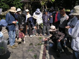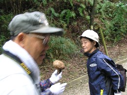 【左】「これなんですか」「ノウタケというキノコです」「食べれますか」「はい、食べれます。ただし、お年寄りから」