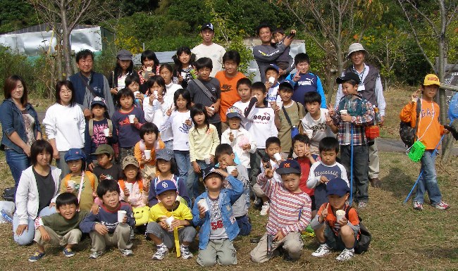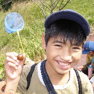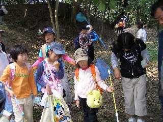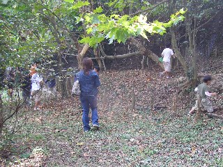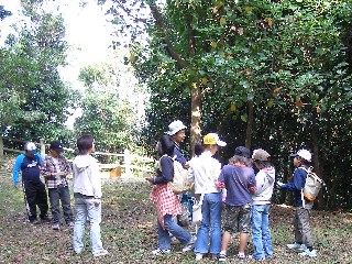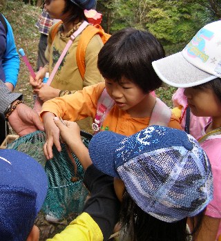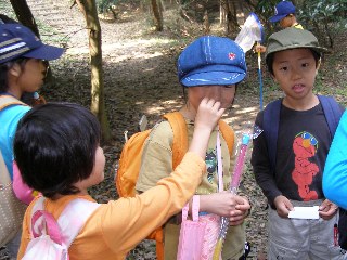 【左】森を駆け回り、フィールドビンゴをやっています。