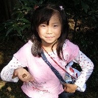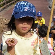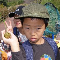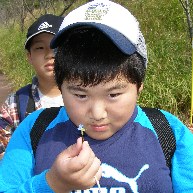 【右】「この葉、いい匂いがするから嗅いで見て」