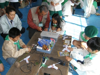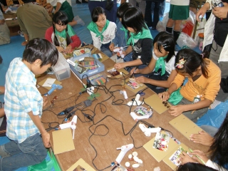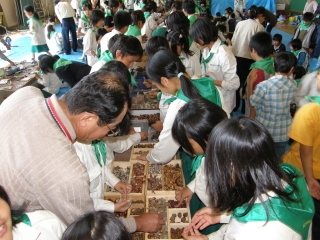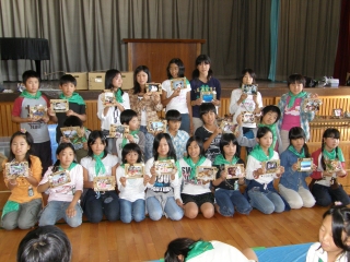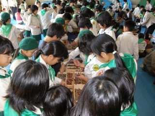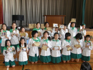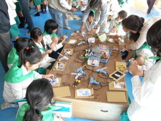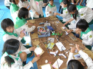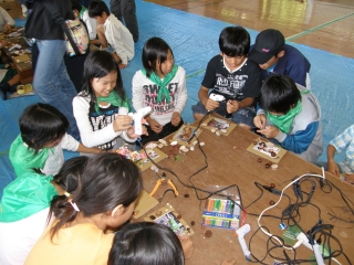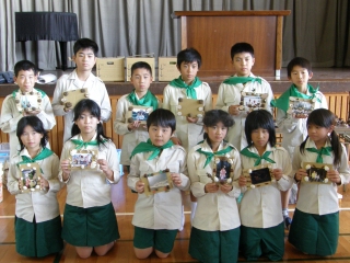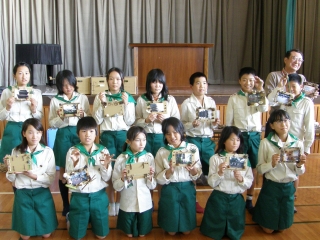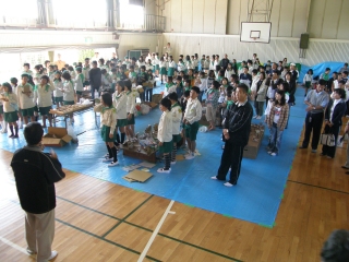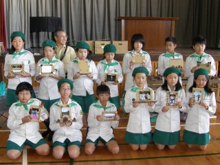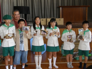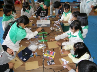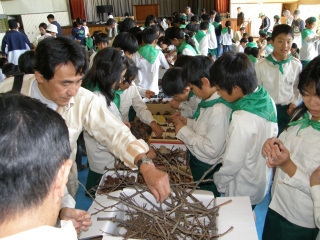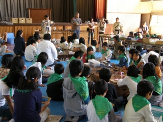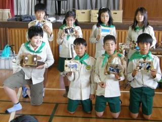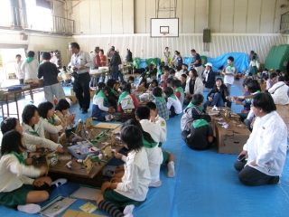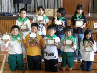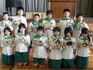 【左】作品が完成し、終了式を待つみどりの少年団