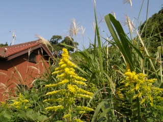 【右】セイタカアワダチソウとススキ。いずれセイタカアワダチソウをススキが駆逐します。