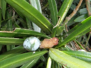 【右】イヌマキの果実。赤い部分はおやつになります。